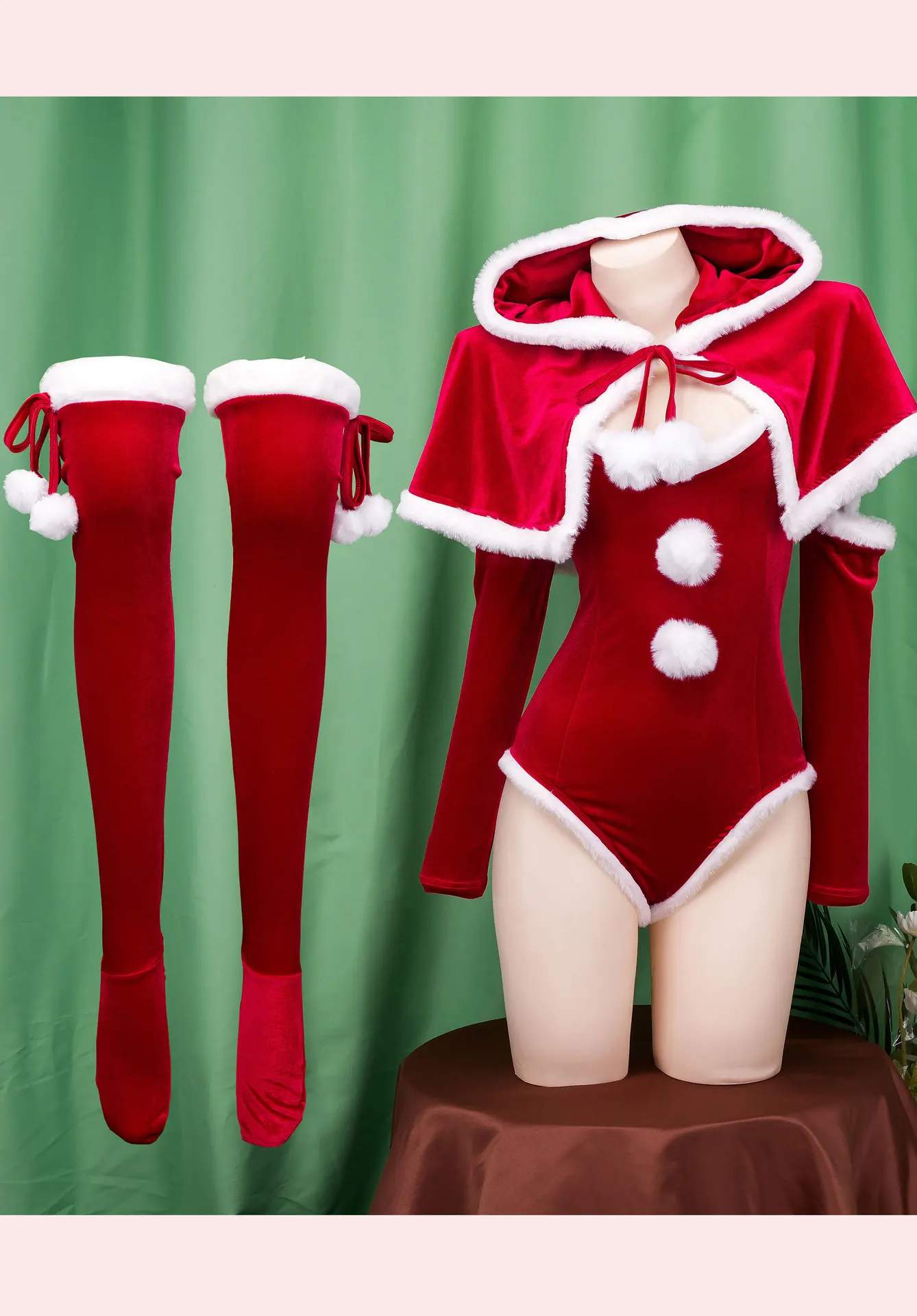 Anime Group Christmas Uniform Set Bodysuit Red Hooded Short Cap Stocking Outfits Cosplay Costumes