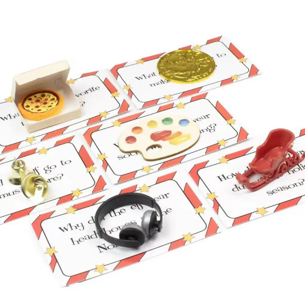24-day advent calendar filled with unique trinkets, cards, riddles, games, and activities centered around christmas elves.