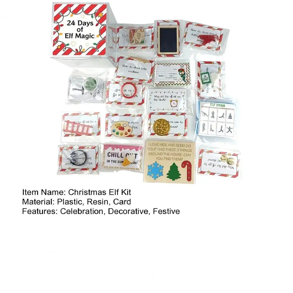 Christmas Countdown Set 24 Days of Christmas Elf Kit Fun Activities Props Countdown Gift for Xmas Party Favors Christmas Themed
