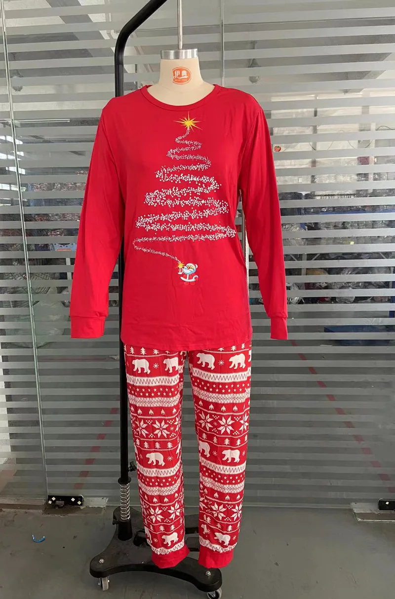 Designed with a charming Christmas tree and snowflake pattern in festive red and green tones, these joyful pajamas are perfect for cozy nights, cheerful mornings, and unforgettable family holiday photos.