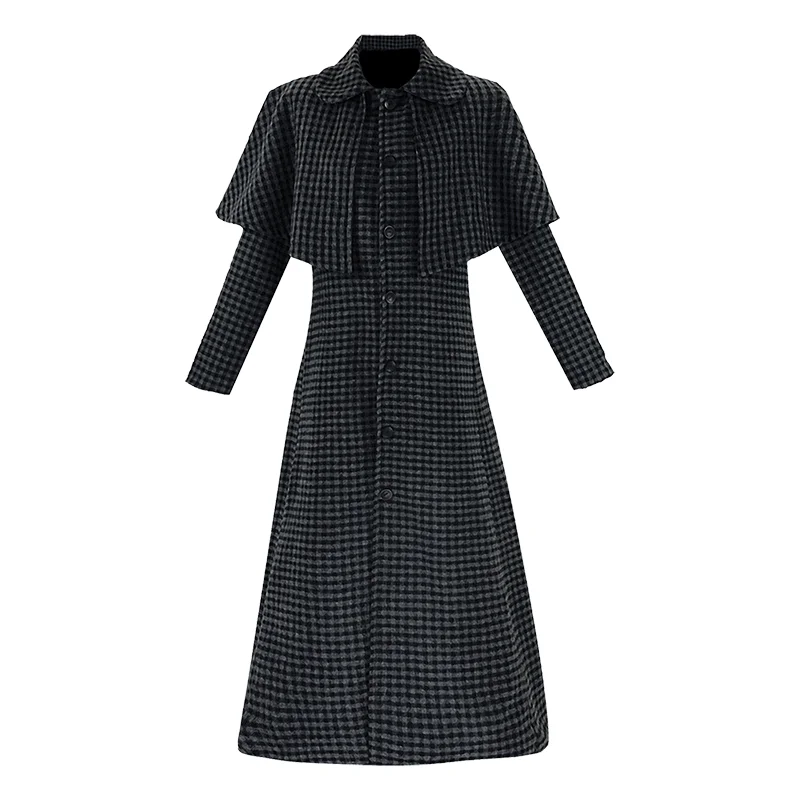 Gothic Style Long Checkered Overcoat Cosplay Costume Adult Unisex Halloween Carnival Casual Wear Outfit - PG03
