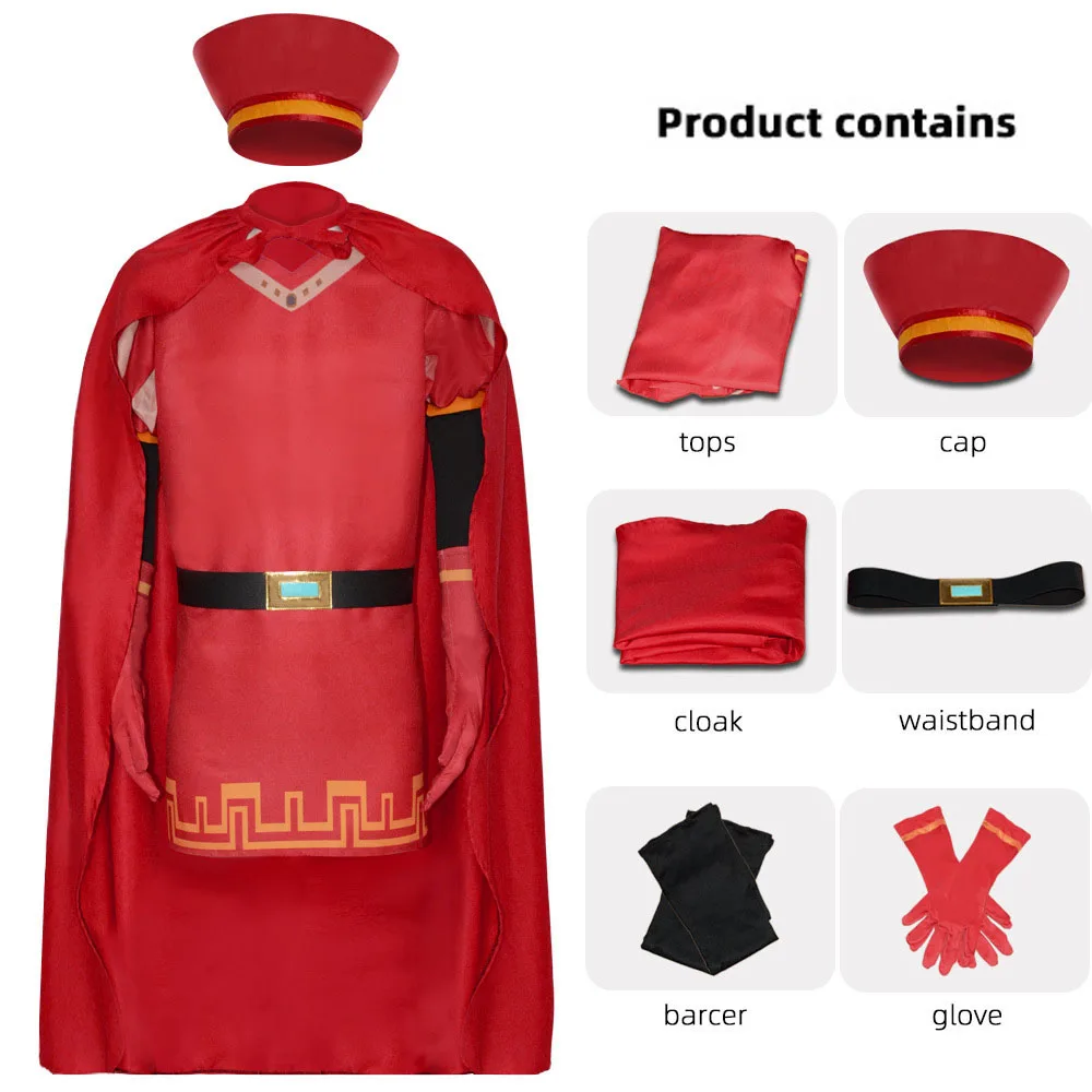 Medieval Royal Cosplay Costume Red Cloak Hat Gloves Outfit Halloween Carnival Party for Kids Women Men PG11